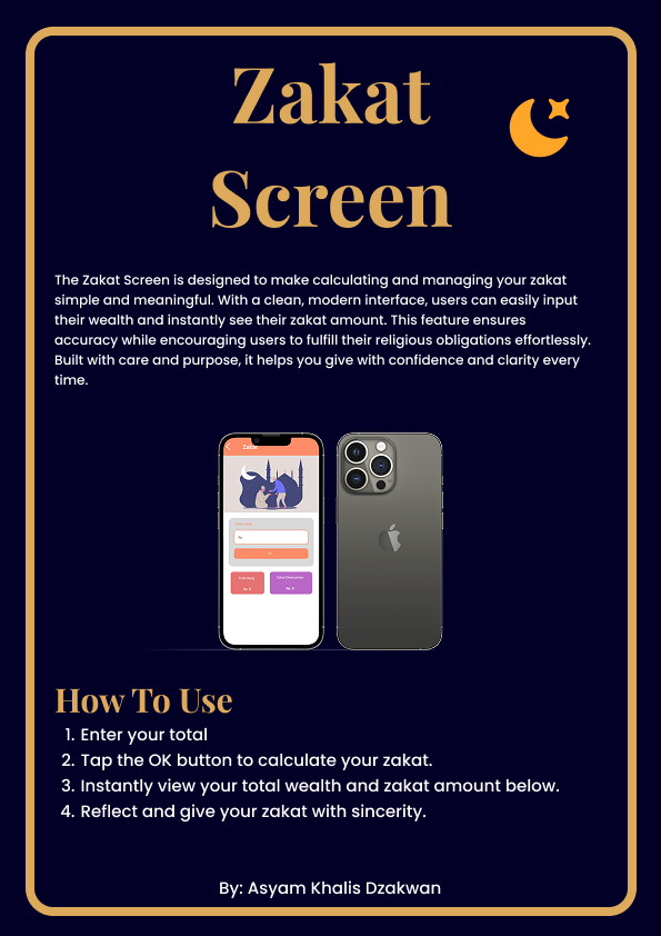 Zakat Screen The Zakat Screen is designed to make calculating and managing your zakat simple and meaningful.With a clean, modern interface, users can easily ...